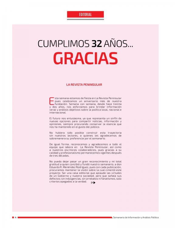 La Revista Peninsular es una publicación de información y análisis político y social. Entrevistas, reportajes y columnas de interés general.