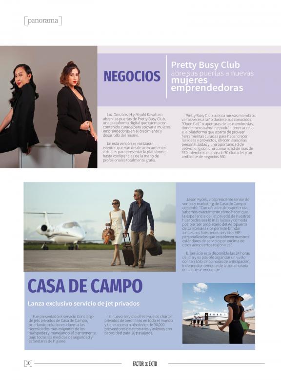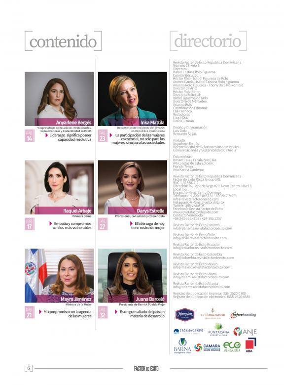 FACTOR DE ÉXITO es una revista de circulación bimestral y plataforma digital que ocupa un espacio relevante en la cobertura de los temas gerenciales y de negocios en República Dominicana, esto, apuntada al liderazgo empresarial, las mejores prácticas de negocio, las realidades de los diversos sectores económicos y las tendencias gerenciales y de mejoramiento profesional que contribuyan a elevar la calidad de la gestión empresarial.