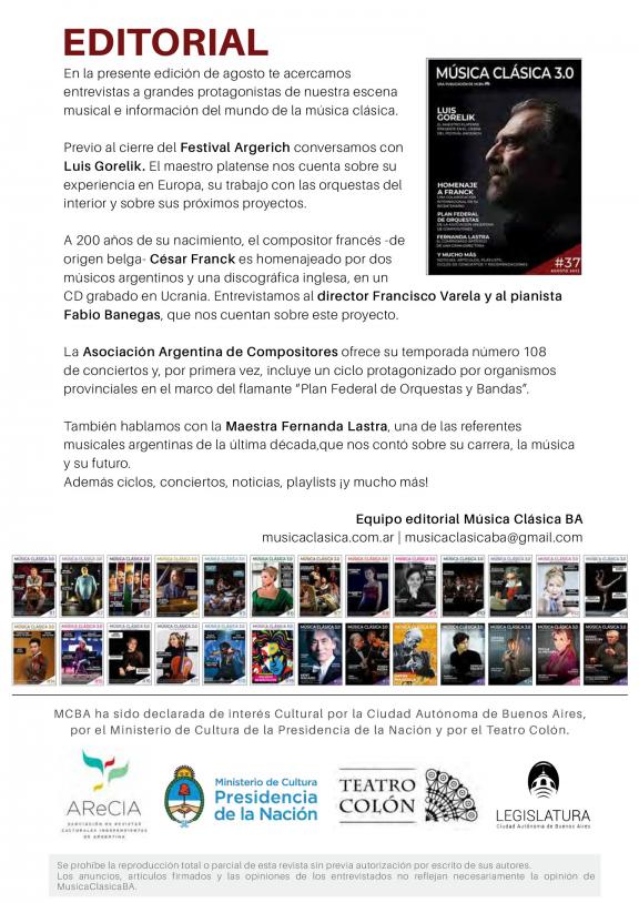 Música Cásica 3.0 es un publicación mensual con un enfoque más actual y desestructurado del mundo de la música clásica. En Música Clásica 3.0 encontrarán información de agenda, notas y entrevistas a artistas destacados.