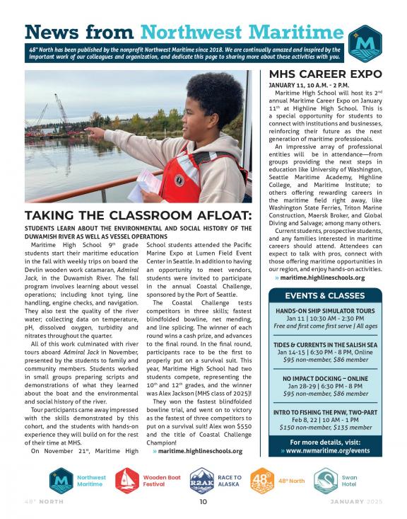 48° North ´s mission is to engage and educate people of all generations in traditional and contemporary maritime life, in a spirit of adventure and discovery. La misión de 48 ° North es involucrar y educar a personas de todas las generaciones en la vida marítima tradicional y contemporánea, en un espíritu de aventura y descubrimiento.
